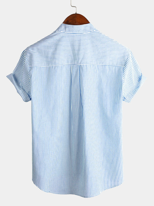 Camisas de rayas de manga corta de algodón transpirable para hombre