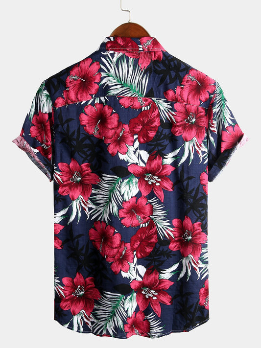 Camisa hawaiana tropical de algodón con estampado de margaritas para hombre