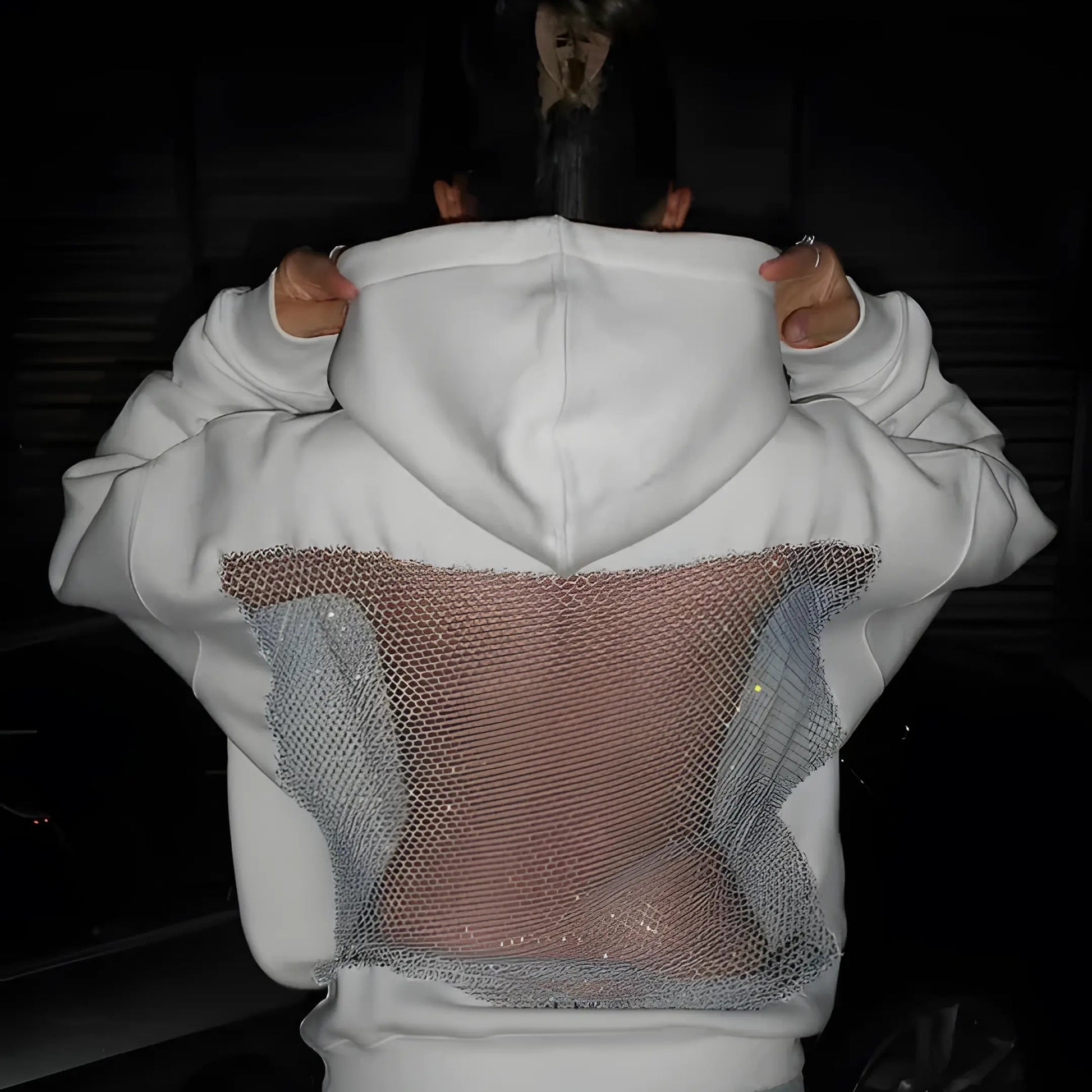 La sudadera con capucha de malla Mirage transforma los conjuntos básicos en algo inolvidable: elegante, seguro y discretamente audaz.