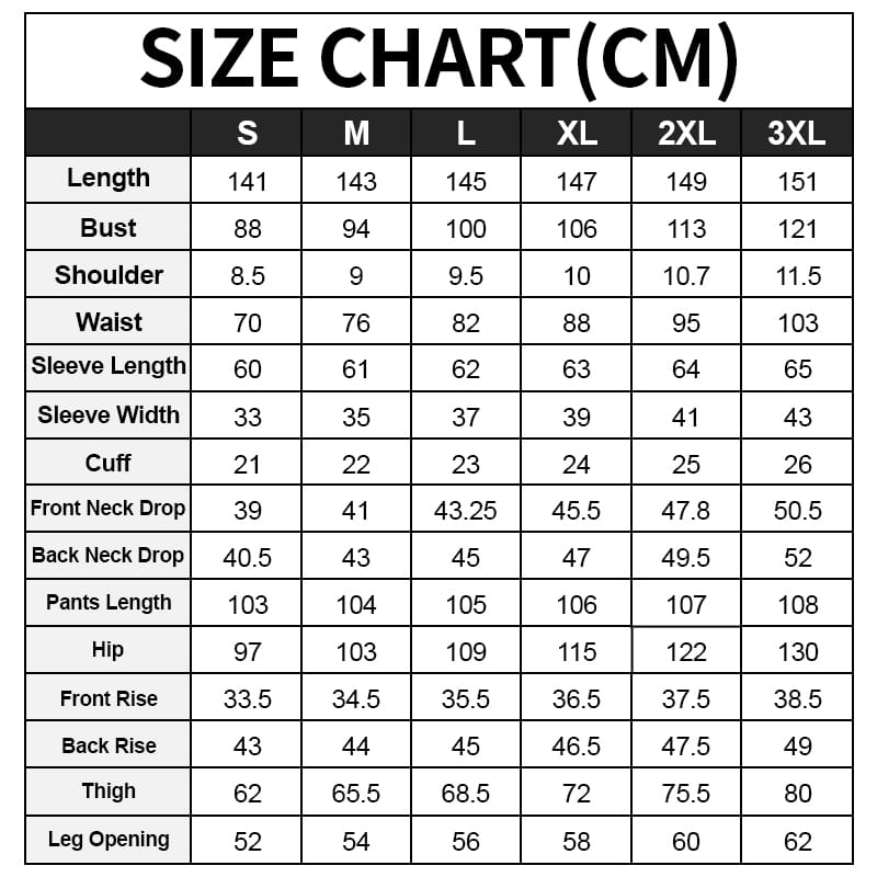 Consulta primero nuestra tabla de tallas para obtener las medidas detalladas y asegurarte de que te quede bien antes de realizar tu pedido. Si tienes dudas, considera pedir una o dos tallas más.